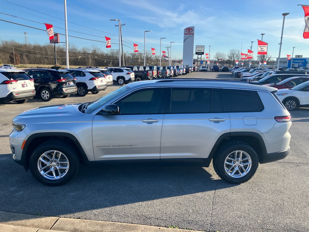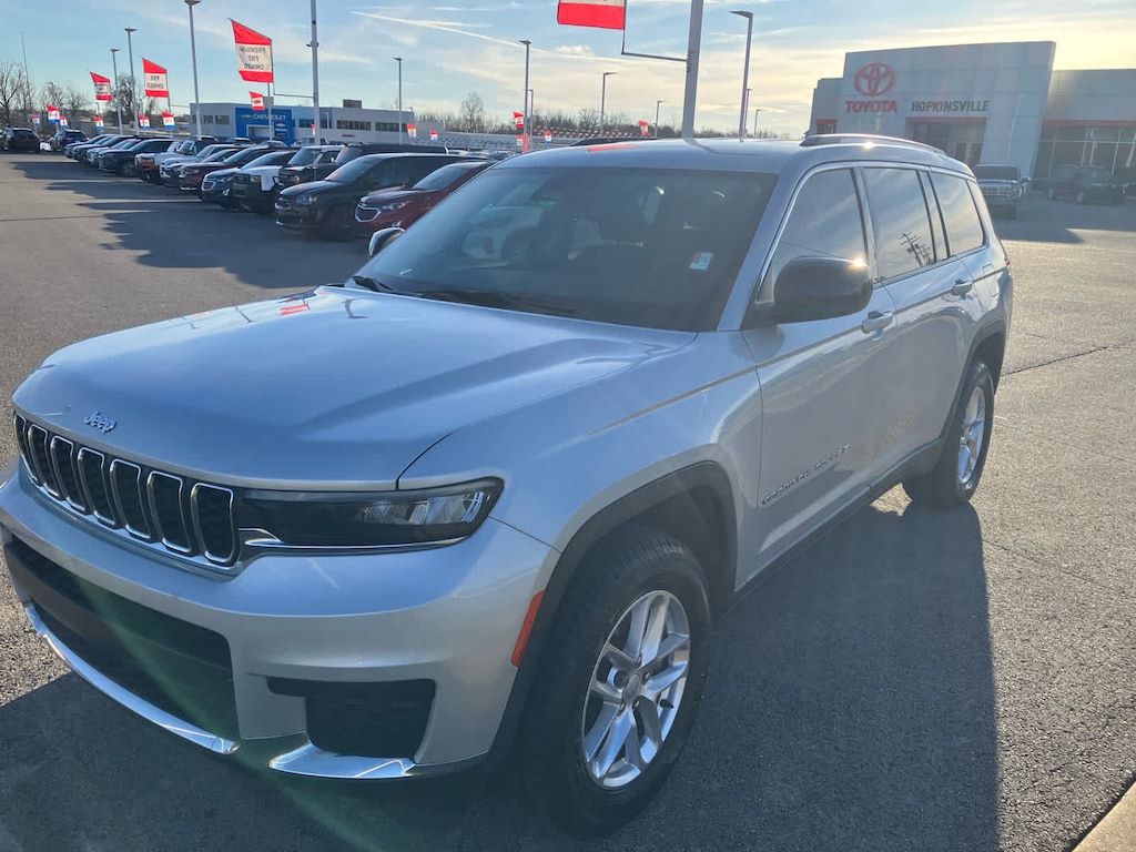 Third Row Seat, Quad Bucket Seats, Rear Air, Back-Up Camera, iPod/MP3 Input, Onboard Communications System, Aluminum Wheels, Dual Zone A/C, Smart Device Integration, Cross-Traffic Alert, Blind Spot Monitor, Lane Keeping Assist, WiFi Hotspot. Jeep Laredo with Silver Zynith exterior and Global Black interior features a V6 Cylinder Engine with 290 HP at 6400 RPM*.