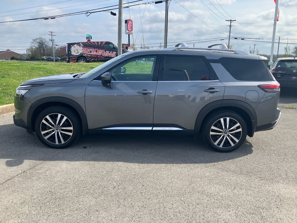 Leather Seats, Third Row Seat, Navigation, Sunroof, Panoramic Roof, Power Liftgate, Rear Air, Heated Driver Seat, Heated Rear Seat, Cooled Driver Seat, Back-Up Camera, Premium Sound System, Satellite Radio, iPod/MP3 Input, Onboard Communications System Nissan Platinum with Gun Metallic exterior and Charcoal interior features a V6 Cylinder Engine with 284 HP at 6400 RPM*.