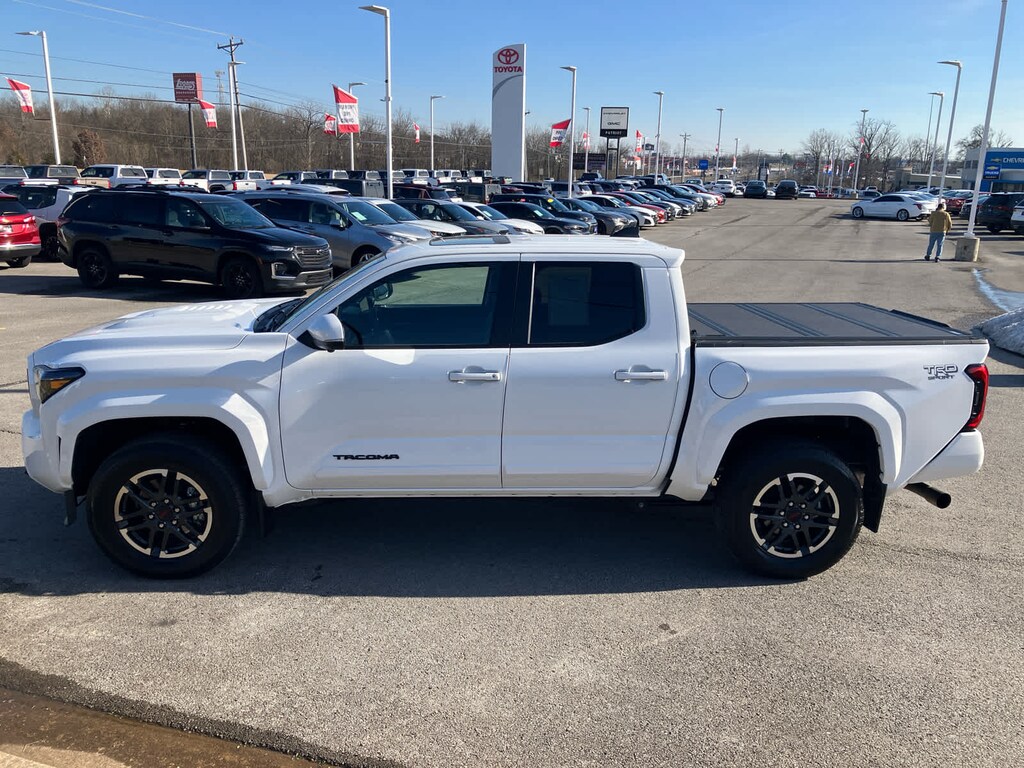 TRD SPORT PREMIUM PACKAGE Power Tilt/Slide Moonroof w/Sliding Sunshade, 3D Panoramic View Monitor, selectable front, side and rear views, TACOMA Stamped Power Open & Close Tailgate, hands-free knee lift assist, integrated taillight bump switches and jam protection, Digital Rearview Mirror, auto-dimming, compass and HomeLink universal transceiver, Towing Technology Package, Integrated Trailer Brake Controller, multi-information display (MID) screen and trailer brake type, gain and manual trailer brake output controls, Towing Hitch, Pedestrian Detection, Heated & Ventilated Front Seats, Deck Storage Box, Heated Leather-Trimmed Steering Wheel, Qi-Compatible Wireless Charging, Radio: 14 Toyota Audio Multimedia, touchscreen, wireless Apple CarPlay® and Android Auto® compatibility and SiriusXM, HARD TRI-FOLD TONNEAU COVER (TMS). MP3 Player, Privacy Glass, Child Safety Locks, Steering Wheel Controls, Heated Mirrors.